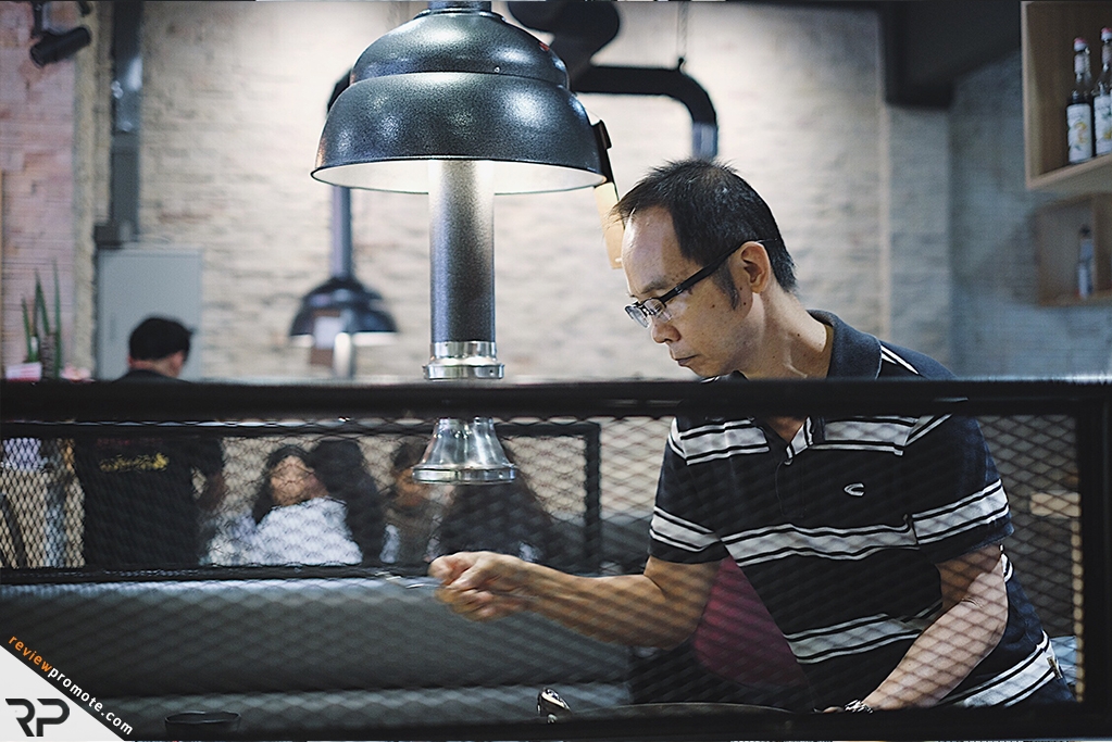 พนักงานจะคอยเดินมาบริการตลอด ทั้งกลับชิ้นเนื้อ ตัดให้ คีบพักไว้ หรือแม้กระทั่งเดินมาเปลี่ยนเตาบ่อยๆ