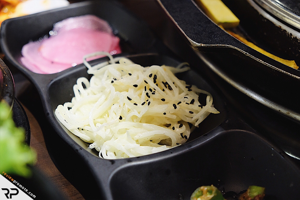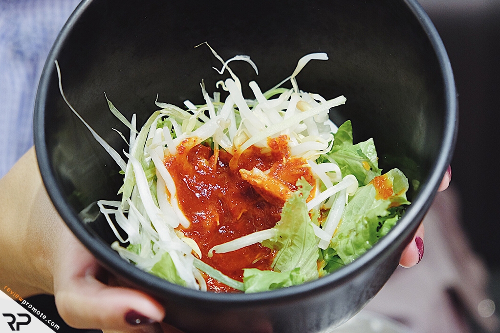 เครื่องเคียงเยอะมาก เติมได้ไม่อั้น ไม่ว่าจะเป็น ผักสลัด กิมจิ พริกโคชูจัง ผักดอง หัวไชเท้า พริกสด สลัด ฯลฯ และซอสสูตรพิเศษของทางร้าน