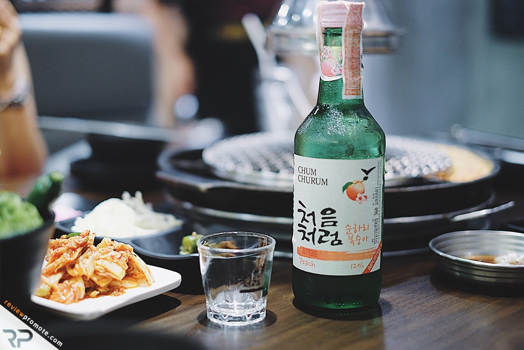 ปิ้งย่างก็ต้องกินกับโซจู ถึงจะได้ลิ้มรสความฟินแบบเกาหลีแท้ๆ เราสั่งโซจูรสลูกพีช ราคา 300.- เป็นโซจูที่มีกลิ่นพีชอ่อนๆ รสชาติเหมือนน้ำผลไม้ที่มีแอลกอฮอล์นิดๆ มันช่างเข้ากันกับหมูย่างได้เป็นอย่างดี