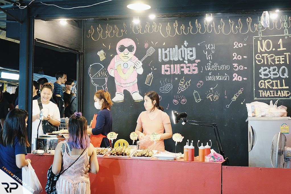 ร้านแนะนำจ้า!! ร้านบาร์บีคิวเชฟตุ๋ยเรนเจอร์ ร้านนี้โด่งดังมาก มาที่นี่ต้องลองชิมนะคะ มีบาร์บีคิวให้เลือกหลากหลายทั้ง หมู ไก่ เนื้อริบอาย และเห็ดห่มผ้า (เห็ดพันเบค่อน) ราคา 20-30 บาท