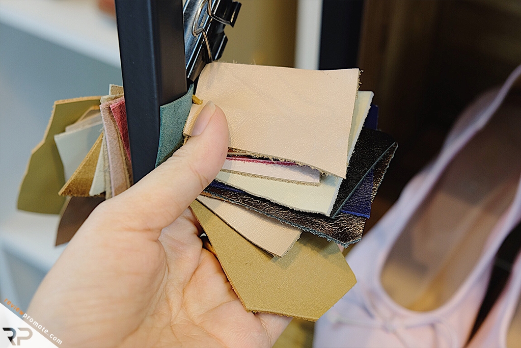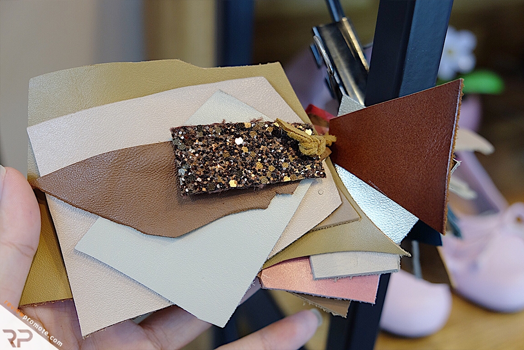 ใช้เป็นหนังแท้ทั้งหมด ไม่มีสารเคมีรุนแรง หนังไม่แข็ง ไม่เจ็บเท้า มีทั้งหนังวัว และหนังแกะ ซึ่งหนังแกะจะนิ่มมาก และราคาก็จะสูงกว่าหนังวัว แต่มันก็คุ้มค่านะ ถ้าแลกกับความสบายเท้า หนังแกะที่นี่เป็นหนังแกะเกรด A คุณภาพดี ใช้ไปนาน ๆ ก็ไม่แตก ยิ่งใส่ยิ่งนิ่ม ยืดตามขนาดเท้า รองเท้าที่นี่เป็นแบบแฮนด์เมค ทำด้วยแรงงานคนทั้งหมด ทำคู่ต่อคู่ โดยช่างที่มีประสบการณ์การทำรองเท้าที่ทำรองเท้าส่งออกยุโรปมามากกว่า 40 ปี เข้าใจและรู้จักปัญหาเท้า เข้าใจรูปทรงเท้าของลูกค้าแต่ละคนอย่างดี ใส่ใจทุกรายละเอียด