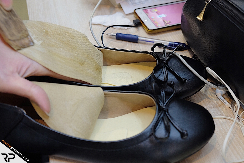 แอดเลือกแบบคัทชูสีดำ แต่มันหลวมไปหน่อยทางร้านก็ปรับไซส์เพิ่มให้ครึ่งไซส์ โดยการเพิ่มพื้นด้านล่าง เป็นบริการที่ทำให้ฟรี นั่งรอแปปเดียวก็เสร็จแล้ว