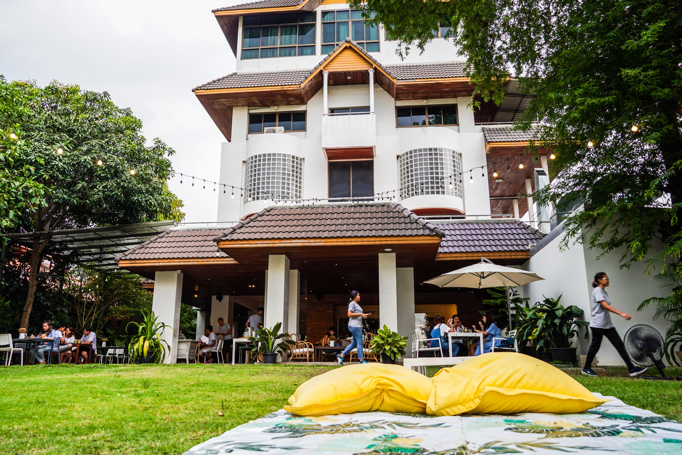 - ส่วนที่เป็นลานสนามหญ้า... มีเสื่อ และที่นั่งเบาะให้บริการ