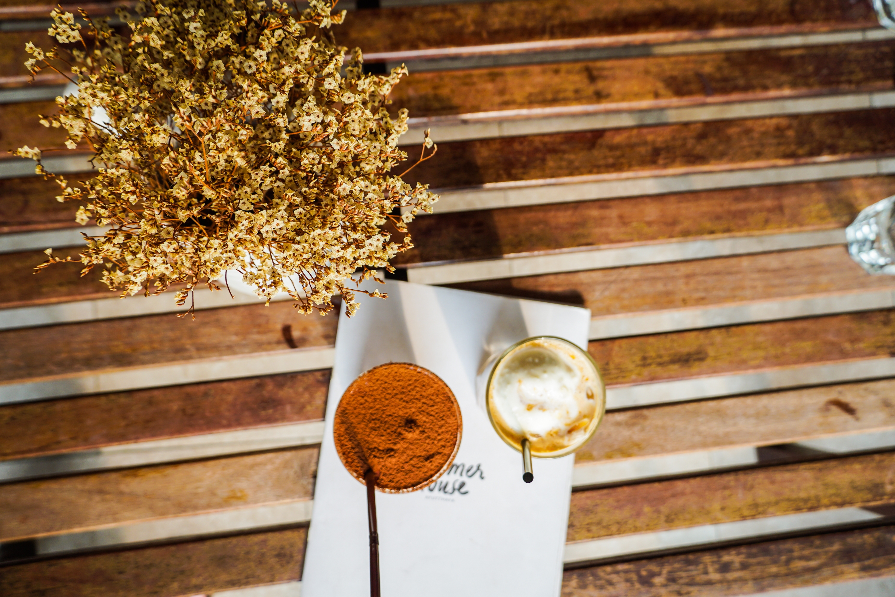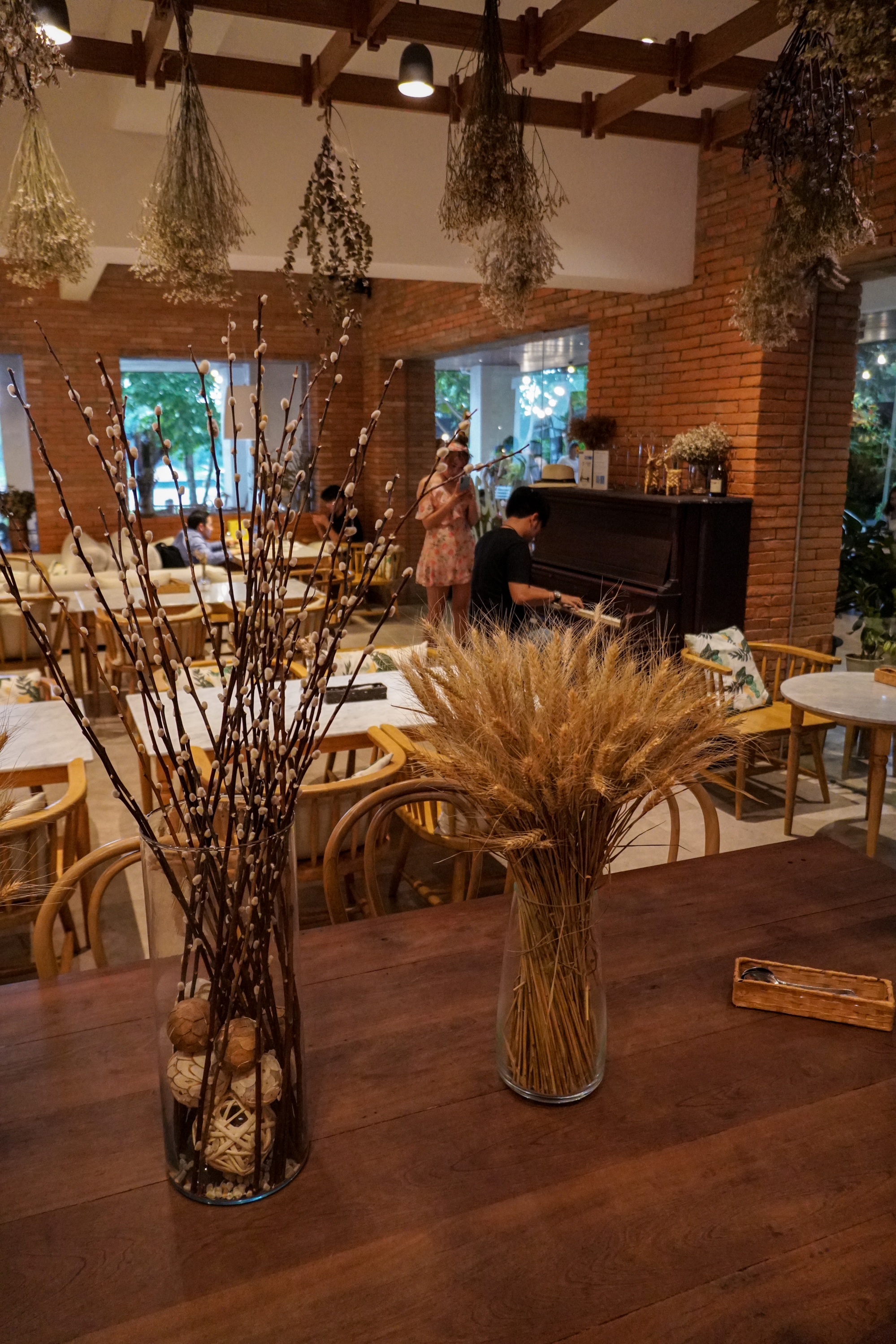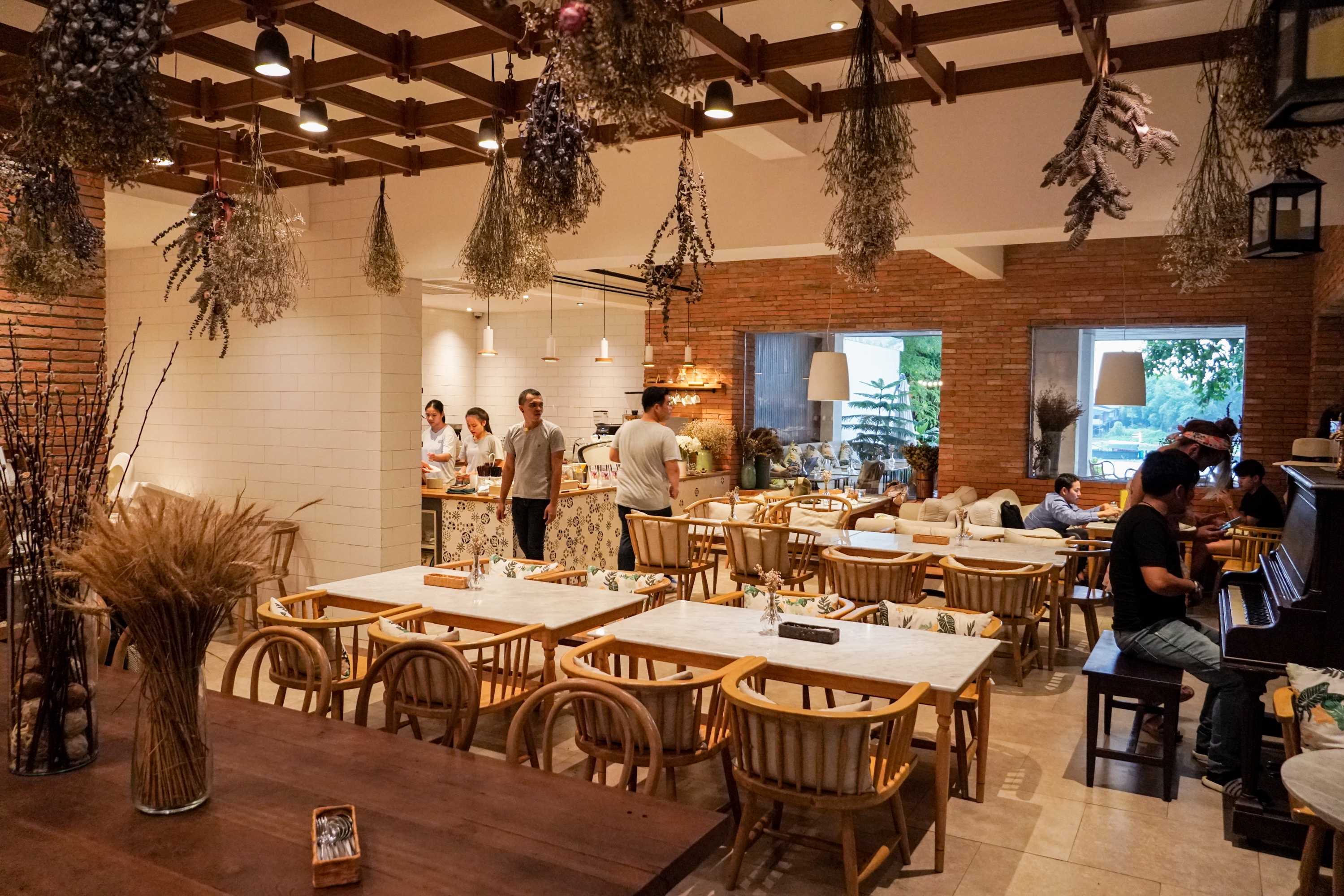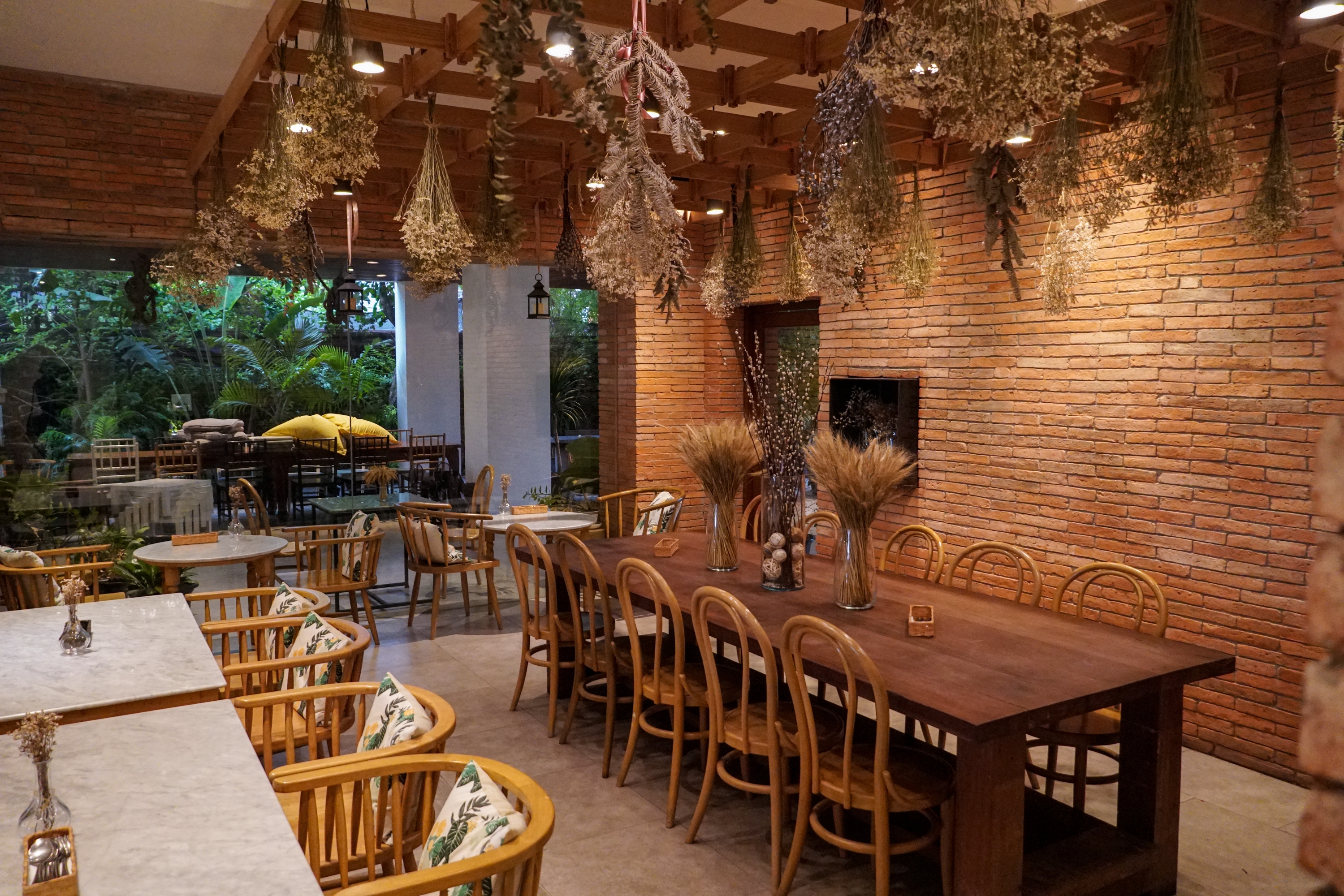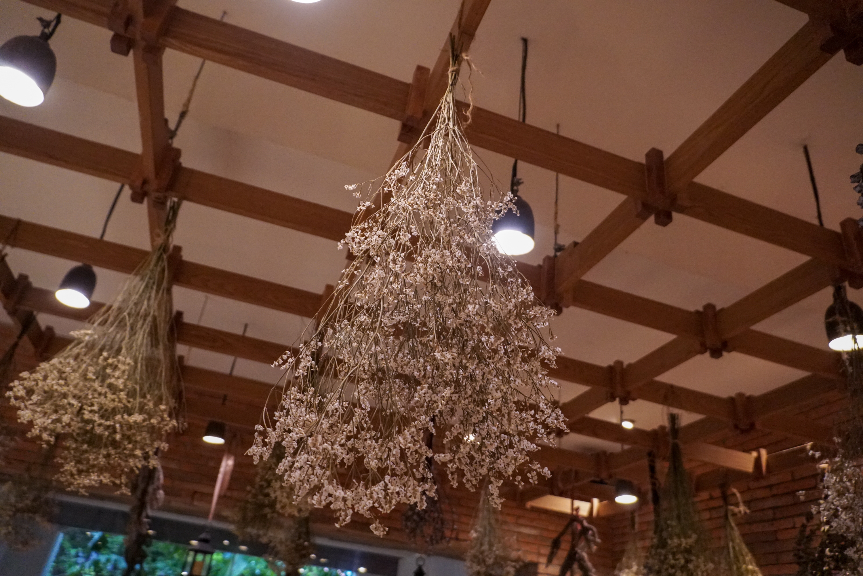 บรรยากาศด้านใน เหมือนหลุดไปอีกโลก ตกแต่งโดยดอกไม้แห้งนำมาแขวนได้เก๋มากๆ ... ห้องแอร์เย็นสบาย