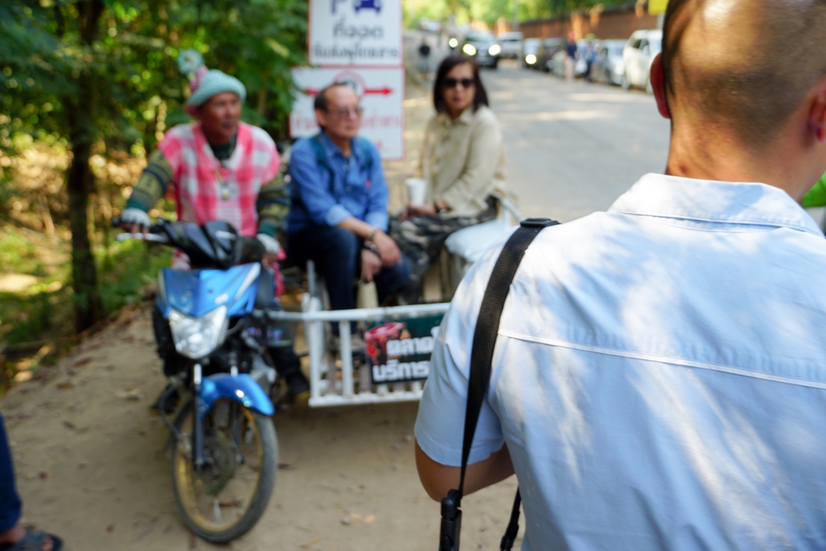 แอดมินขับรถเลยตลาดมานิดตามที่เจ้าหน้าที่อำนวยความสะดวกให้จอด ... พอลงจากรถจะมีรถมอเตอร์ไซต์ดัดแปลงพร้อมที่นั่งขับมารับถึงประตูรถ ... (แอบตกใจเหมือนกัน)
