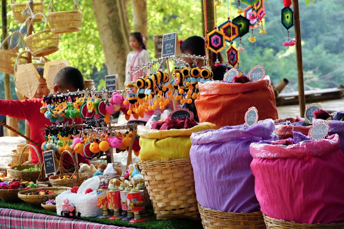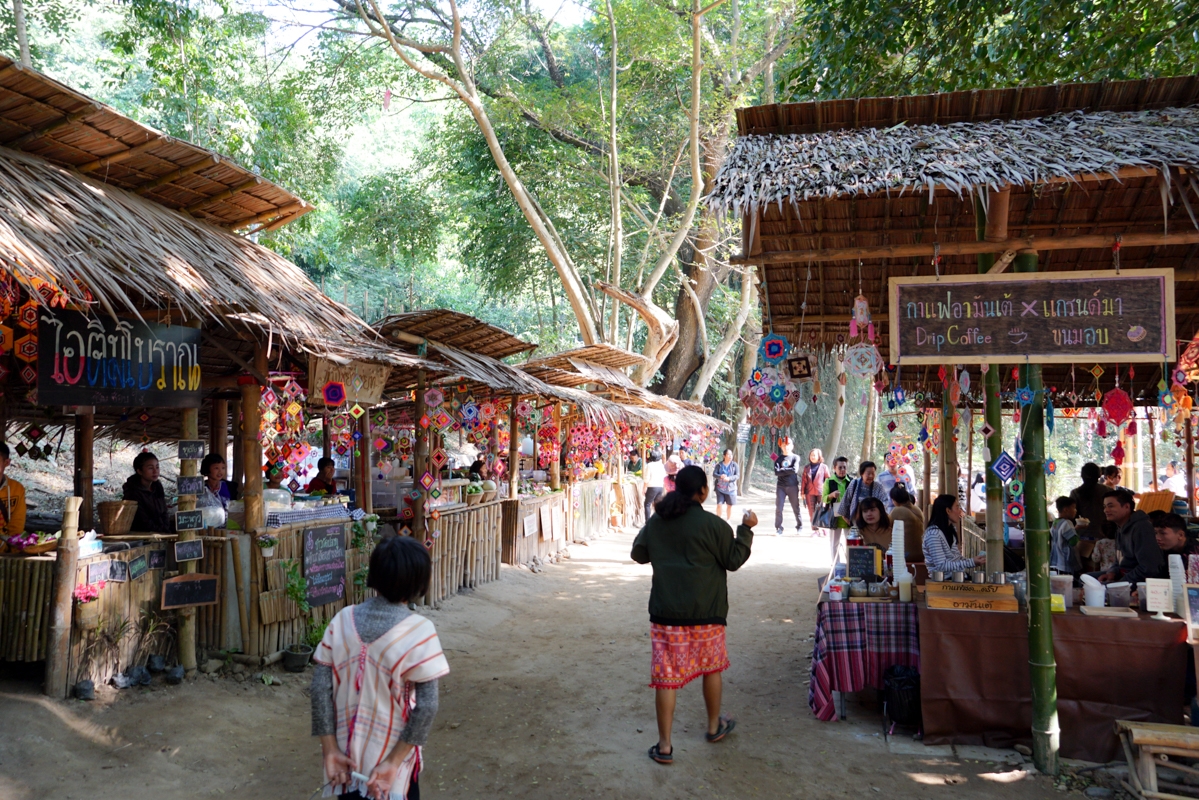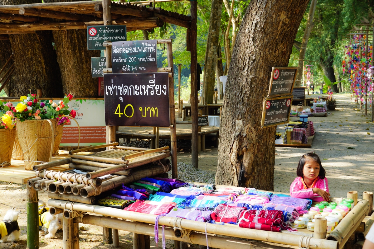 ชุดแบบแปลกตาที่ชาวบ้านใส่กันเต็มไปหมด (ชุดกะเหรี่ยง) นั้นคือ ชุดพื้นบ้านที่ใส่กันอยู่แล้ว และน้องๆ เด็กๆ ที่อยู่ภายในตลาดนั้นก็น้องๆ ในพื้นที่ทำหน้าที่ต่างๆ บ้างเก็บขยะ บางคนก็นำแป้งทานาคามาบริการแก่นักท่องเที่ยว และแสดงดนตรีไทยให้แก่นักท่องเที่ยว