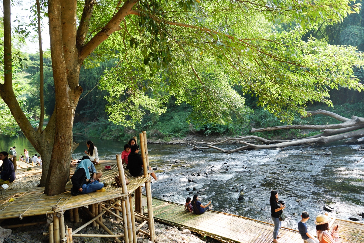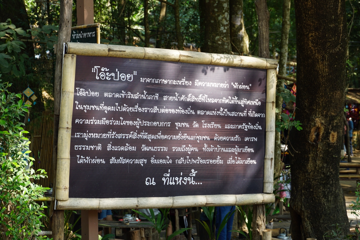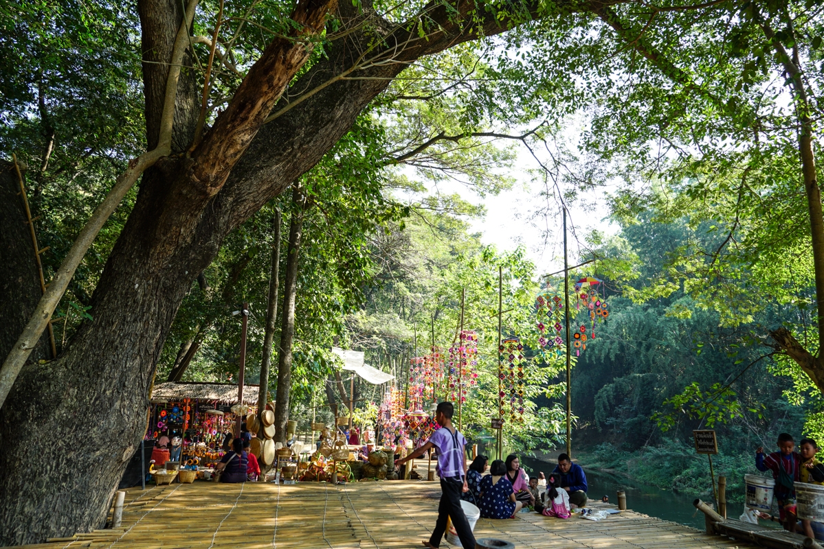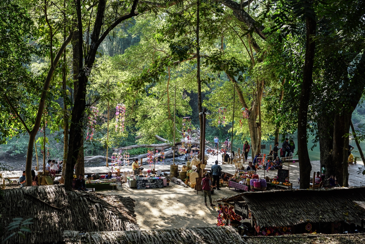 ภาพที่เห็นใน ตลาดโอ๊ะป่อย คือ ชุมชน นักท่องเที่ยว และผู้คน อยู่ท่ามกลางธรรมชาติอย่างครบถ้วนทั้ง ต้นไม้ สายน้ำ และแสงพระอาทิตย์