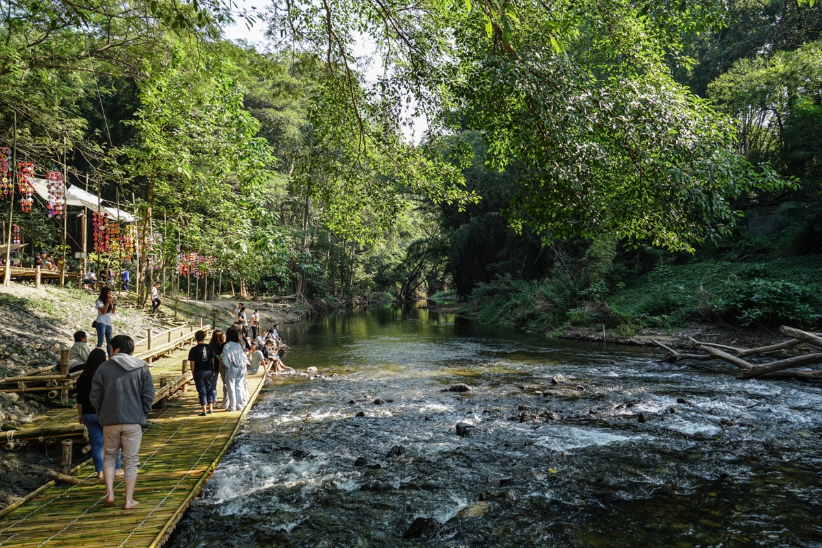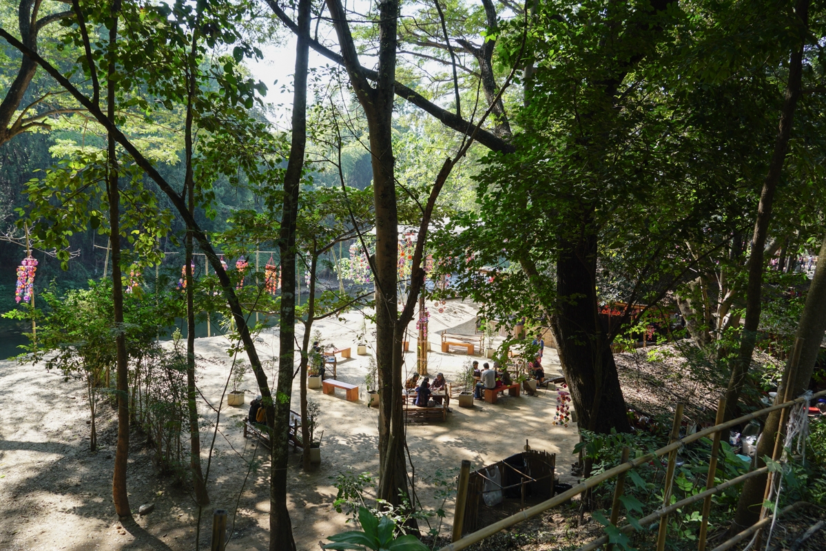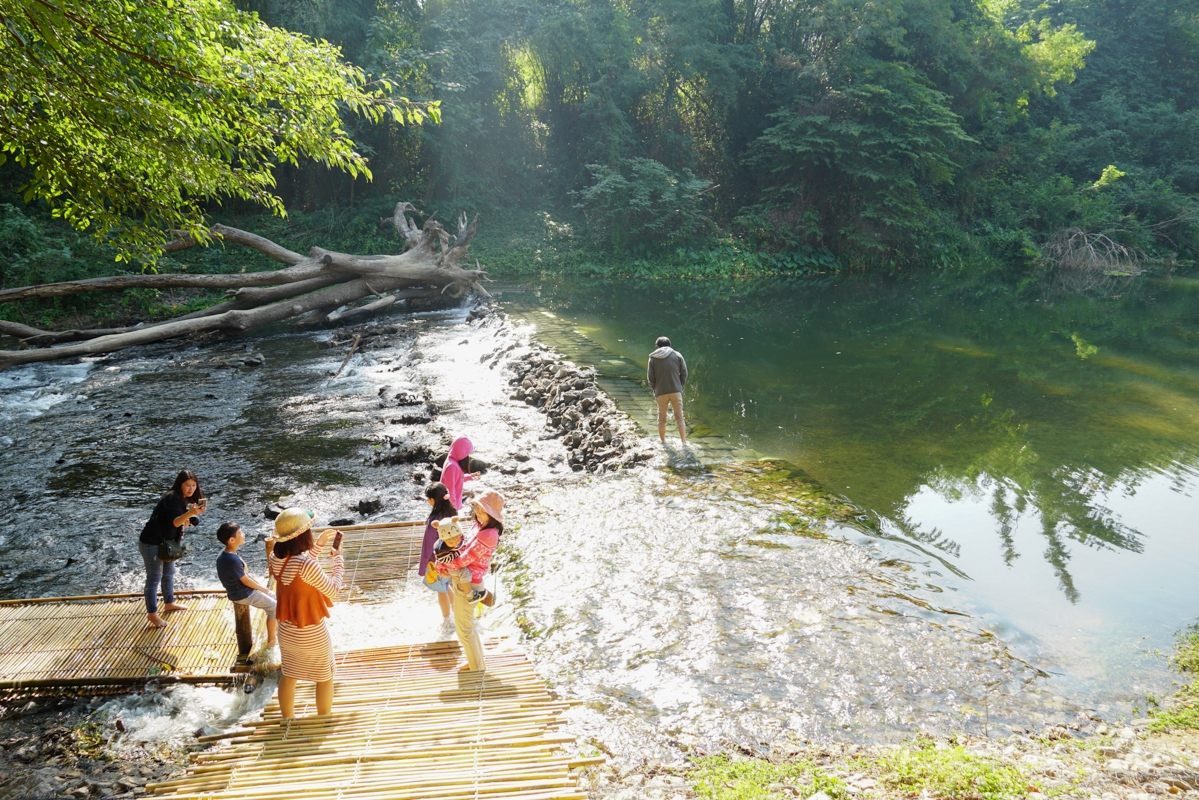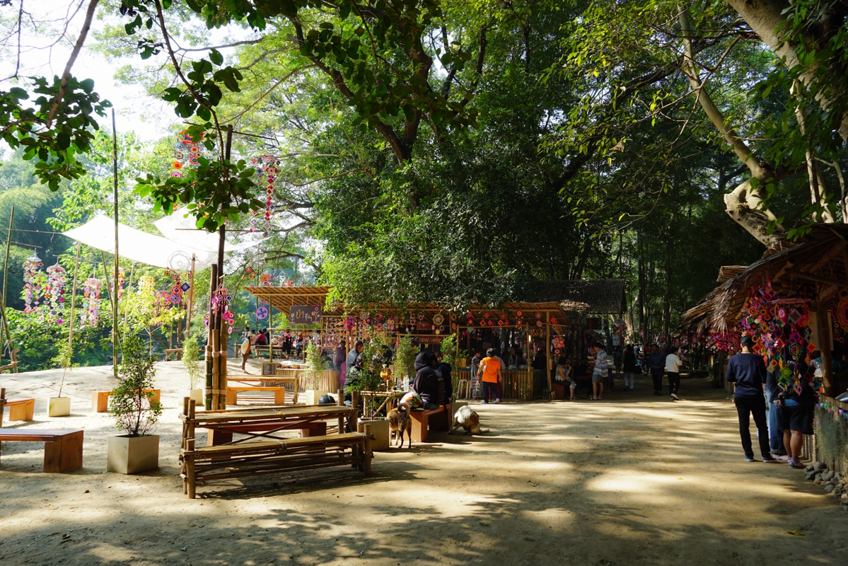 ไฮไลน์ของที่นี่ คือ ธรรมชาติ ... ทางตลาดจัดทำไม้ไผ่สำหรับให้นั่งพักผ่อนอิงธรรมชาติใต้ต้นไม้ใหญ่ พร้อมลำธารจากธรรมชาติแบบหาได้ยาก (กรุณาถอดรองเท้าด้วยนะจ๊ะ)