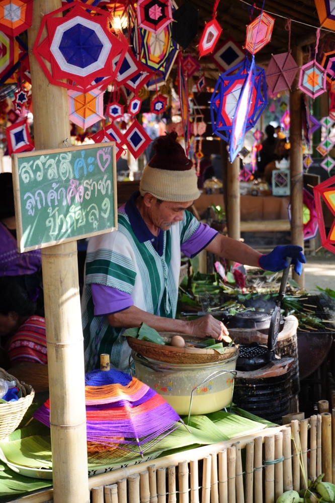 ที่สำคัญที่คนที่ค้าขายทั้งหมด คือ คนในพื้นที่ทั้งหมด ... รวมถึง โมบายต่างๆ ที่เห็นตกแต่งเต็มไปหมด นั้นคือ ผลงานจากคนในชุมชนร่วมมือทำเองทั้งหมด