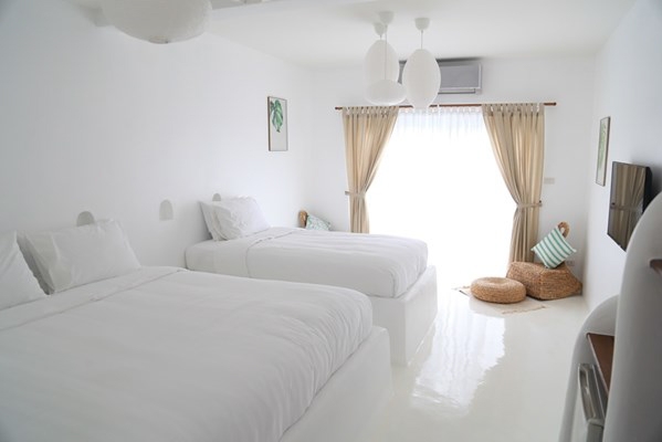 ขอตัดมาที่พักกันหน่อย ... ที่พักตกแต่งสีขาวล้วน กับปูนและไม้ ทำให้บรรยากาศแบบคนทะเลสุดๆ ที่สำคัญ สะอาด มากๆ ส่วนนี้แอดมินให้ 5 ดาว