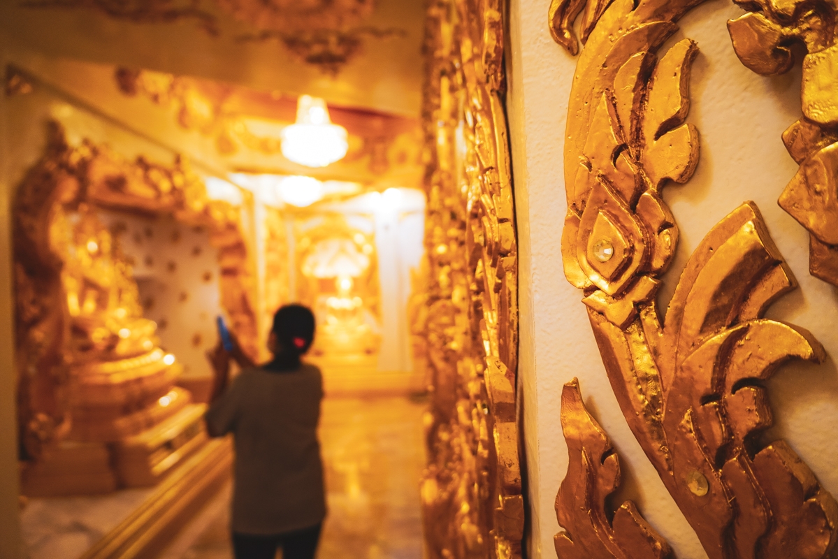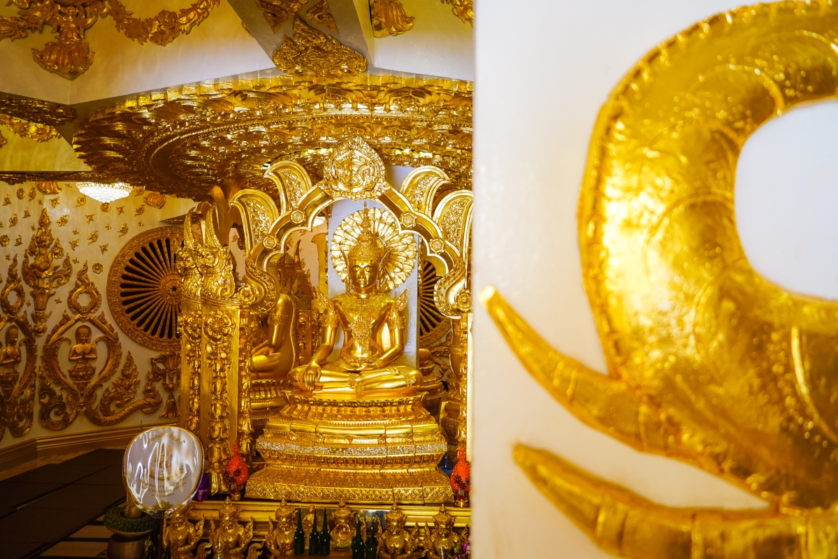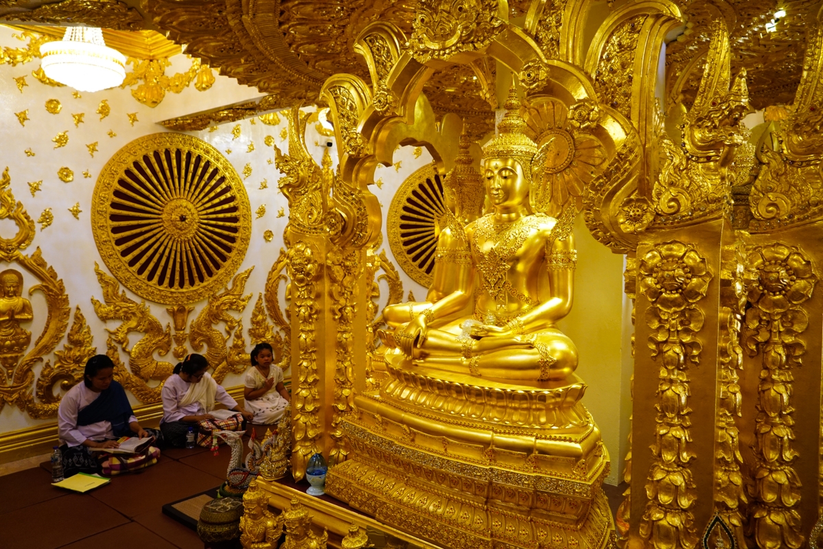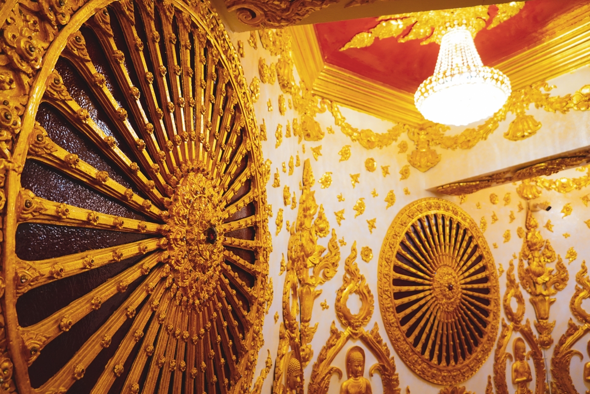 ภายในมีการตกแต่งลวดลายที่สวยงามมากๆ สีเหลืองทองเต็มไปหมดบนกำแพงสีขาวบริสุทธิ์