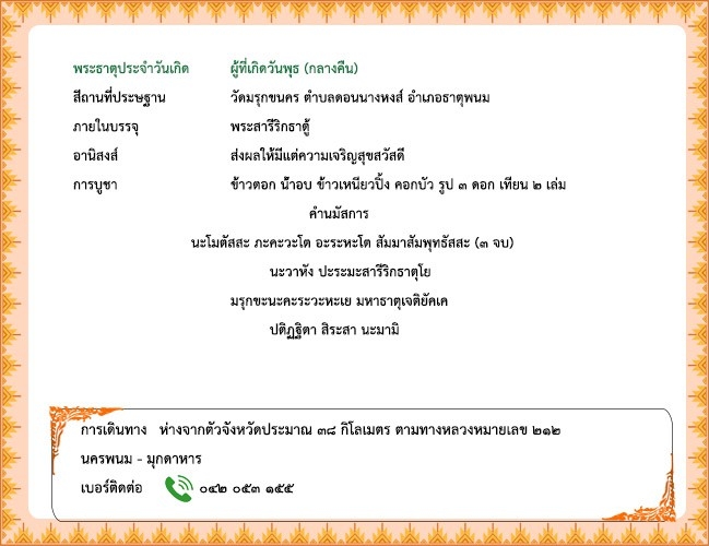 พระธาตุมรุกขนคร พระธาตุประจำคนเกิดวันพุธ กลางคืน