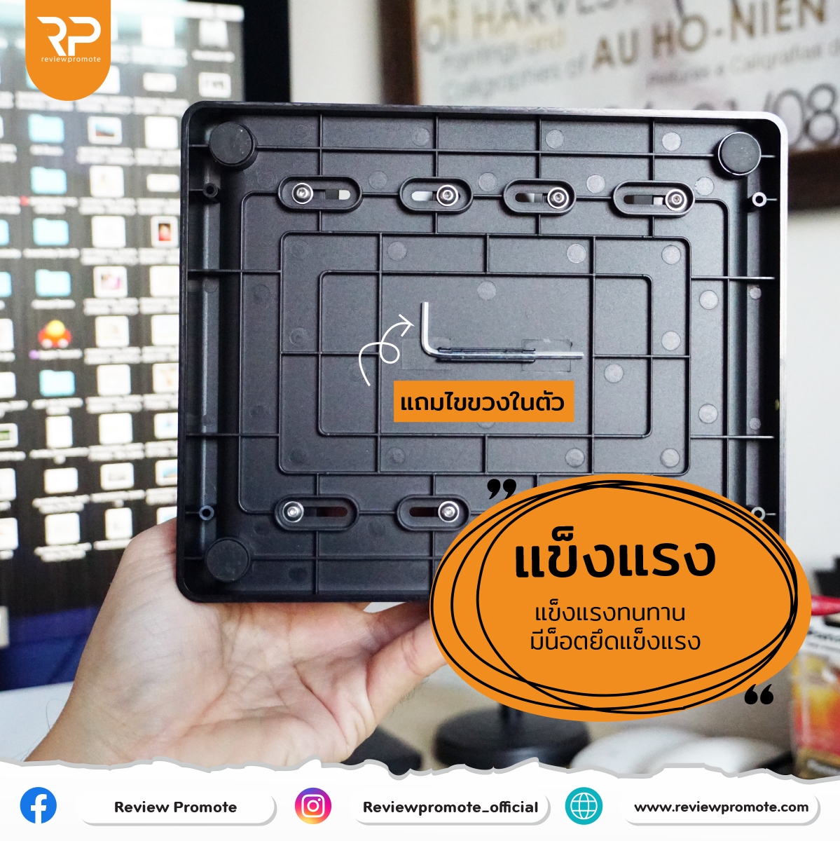 วัสดุเป็นพลาสติก มีแกนแยกโดยด้านล่างมีตัวไขควง 6 แฉกมาให้ (ตอนแรกสารภาพว่ามองไม่เห็น ไปคุ้ยหาที่มาไขตั้งนาน 555 ทีแท้อยู่ใต้ฐานนั้นเอง) ปรับขนาดช่องได้สะดวกสบาย ตามน๊อตที่กำหนด