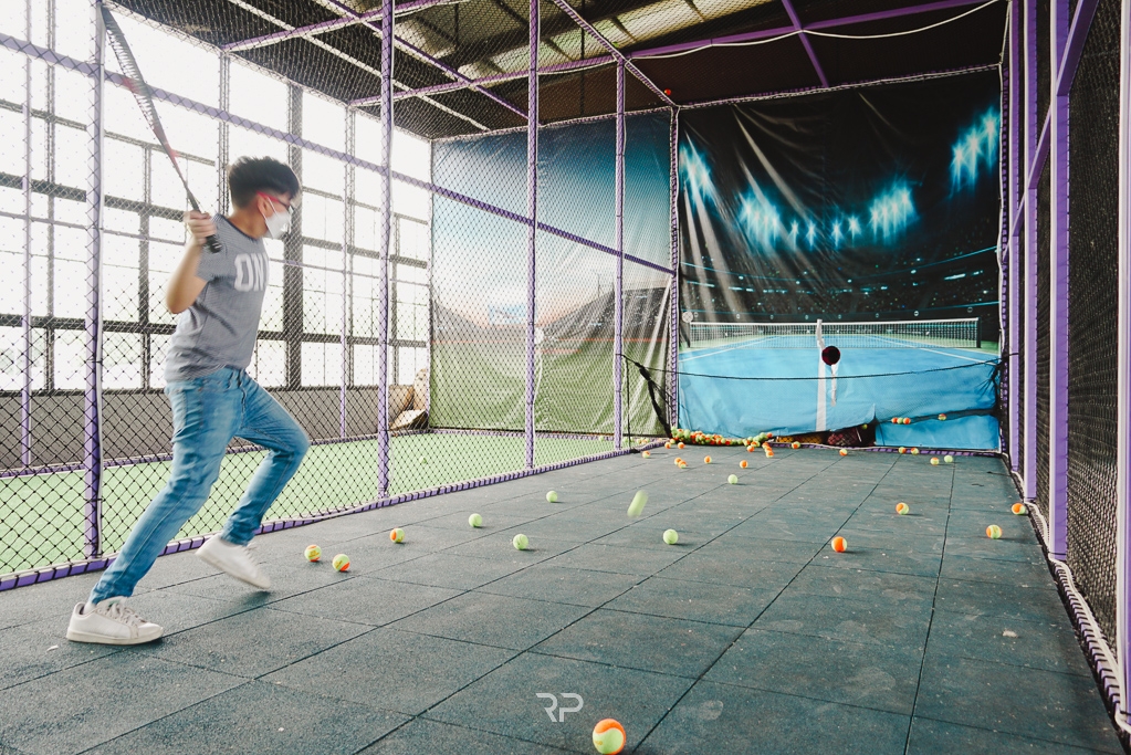 ต่อด้วยเครื่องเล่นออกกำลังกาย ฝึกตีเทนนิส