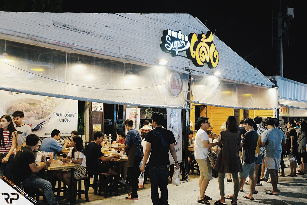 “Super Leng” Nai Pom (pork ribs) "ซุปเปอร์เล้ง" นายป้อม has a long queue with delicious-looking food.